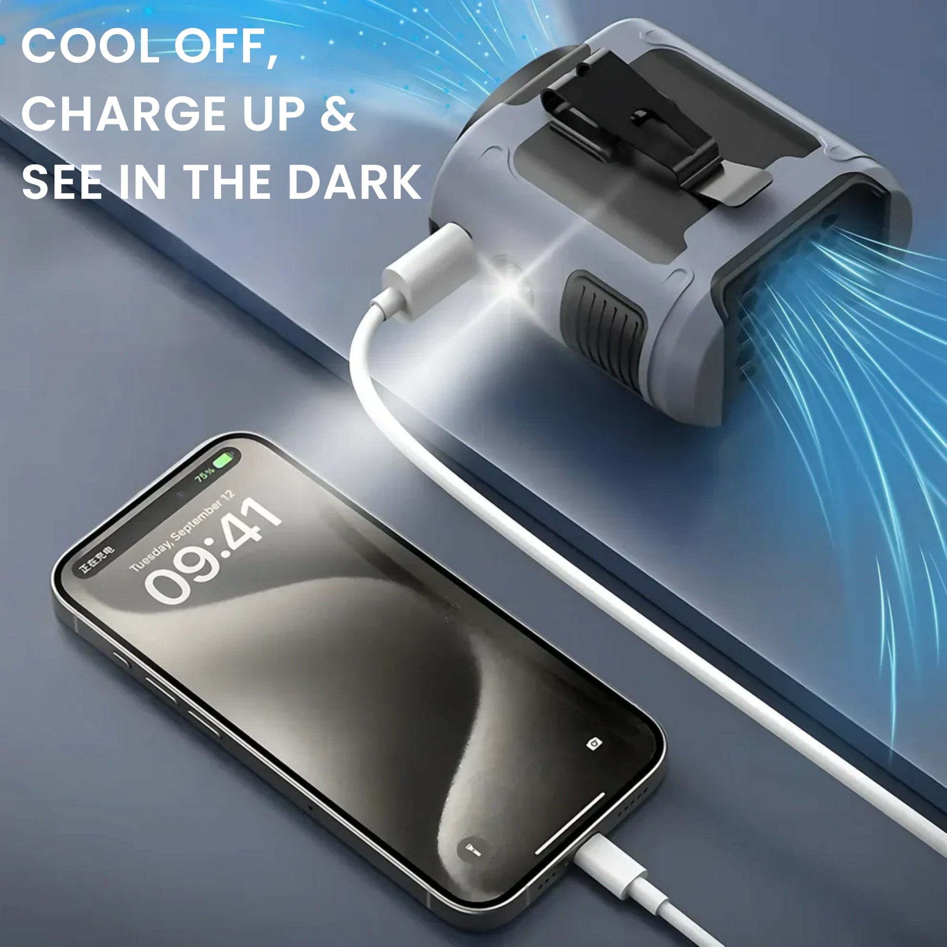 veraGO also comes with a soft neck strap for hands-free cooling, and a built-in stand so you can angle the breeze just right — whether you're on the move or at your desk.